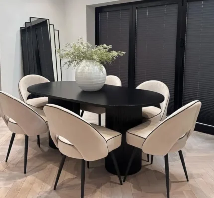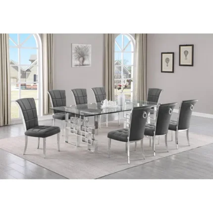 Este conjunto es perfecto para familias o reuniones sociales, adaptándose a comedores de diferentes tamaños. Su diseño refinado y su construcción de alta calidad lo convierten en una excelente opción para quienes buscan muebles modernos y atemporales.