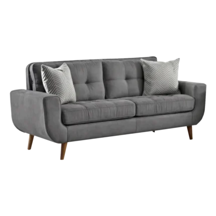 Diseño con un estilo vintage moderno con cojines con botones en el respaldar que dan comodidad, con su espuma de alta densidad y suavidad. Incluye patas vintage de madera con acabados de madera natural.