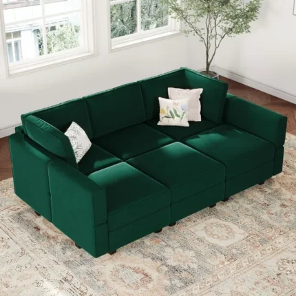 Sofá Acolchado Lexy 3 + 1 + 1 + Puff Baul – Verde