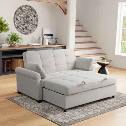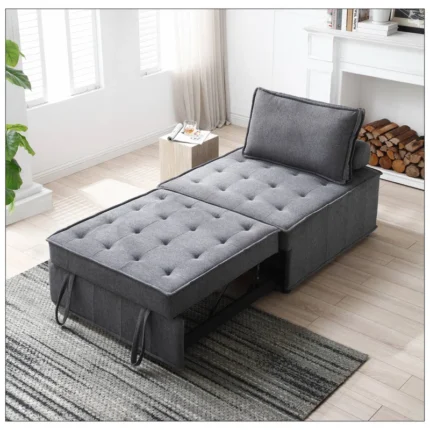 El diseño incluye reposabrazos amplios y confortables, así como cojines ergonómicos para un soporte óptimo. Además, es fácil de convertir en cama, transformándose en una opción práctica para recibir invitados o para uso diario.
