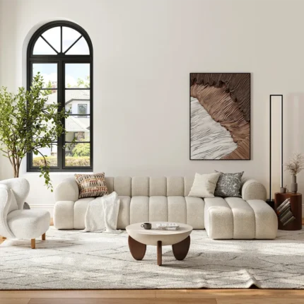 Sofa Seccional Jiangxi 3 Cuerpos + Puff – Ivory