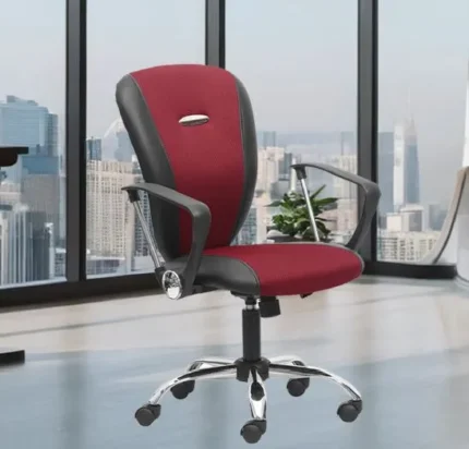Esta silla de oficina combina comodidad y funcionalidad en un diseño ergonómico. Cuenta con un respaldo de malla transpirable que permite una adecuada ventilación, mientras que su asiento acolchado brinda confort durante largas jornadas laborales. Sus reposabrazos ergonómicos ofrecen apoyo adicional. La base metálica con ruedas giratorias facilita la movilidad, y su mecanismo de ajuste en altura permite personalizar la postura para mayor comodidad. Su estructura robusta garantiza durabilidad y estabilidad. Con un diseño moderno y elegante, esta silla es ideal para oficinas, escritorios en el hogar o espacios de trabajo compartidos, proporcionando un equilibrio entre estética y ergonomía.
