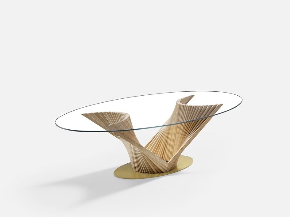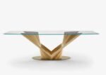 Esta mesa de comedor con superficie de vidrio destaca por su diseño elegante y contemporáneo, ideal para realzar cualquier espacio. Su base escultórica combina funcionalidad y arte, brindando estabilidad mientras añade un elemento visual único. La transparencia del vidrio permite apreciar la estructura inferior, creando un efecto liviano y sofisticado.