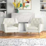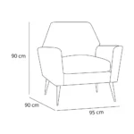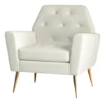 Butaca vintage con botones jalados con un estilo único en el respaldar y en el asiento, con un armazón interno de madera, con patas de color doradas para un estilo moderno y sofisticado para cada ambiente.
