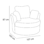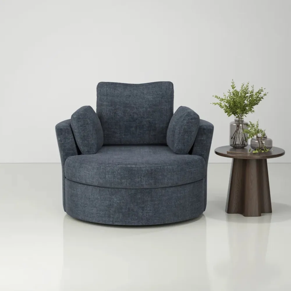 Su forma redonda y su estructura robusta combinan perfectamente con cualquier ambiente. Ideal para salas de estar, dormitorios o rincones de lectura.