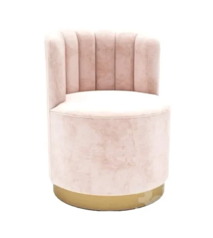El diseño incorpora un respaldo curvo que rodea parcialmente el asiento, proporcionando soporte y un detalle estético único. La base presenta un elegante detalle de líneas verticales, que añade un efecto visual sofisticado y armonioso.