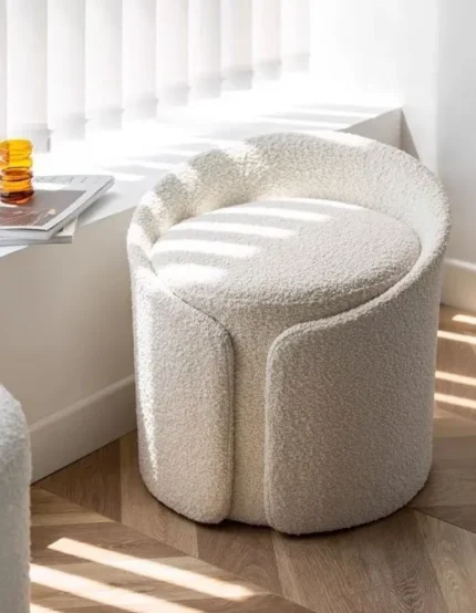 Este es un elegante banquito redondo tapizado en tela tipo bouclé color blanco, ideal para complementar espacios modernos y minimalistas. Su estructura está fabricada en madera tornillo, garantizando durabilidad y resistencia. El asiento está acolchado con espuma de alta densidad, brindando una comodidad superior y una excelente recuperación de forma con el uso.