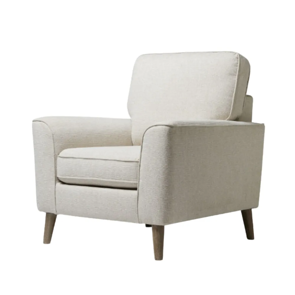 Una butaca de diseño clásico con cojines gruesos y un respaldo ergonómico para un máximo confort. Ideal para salones o áreas de relajación.