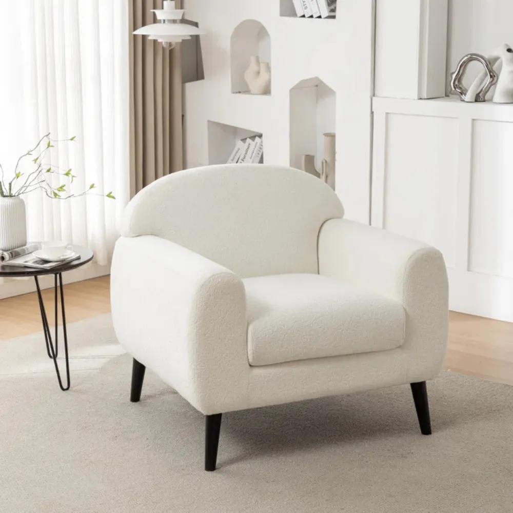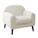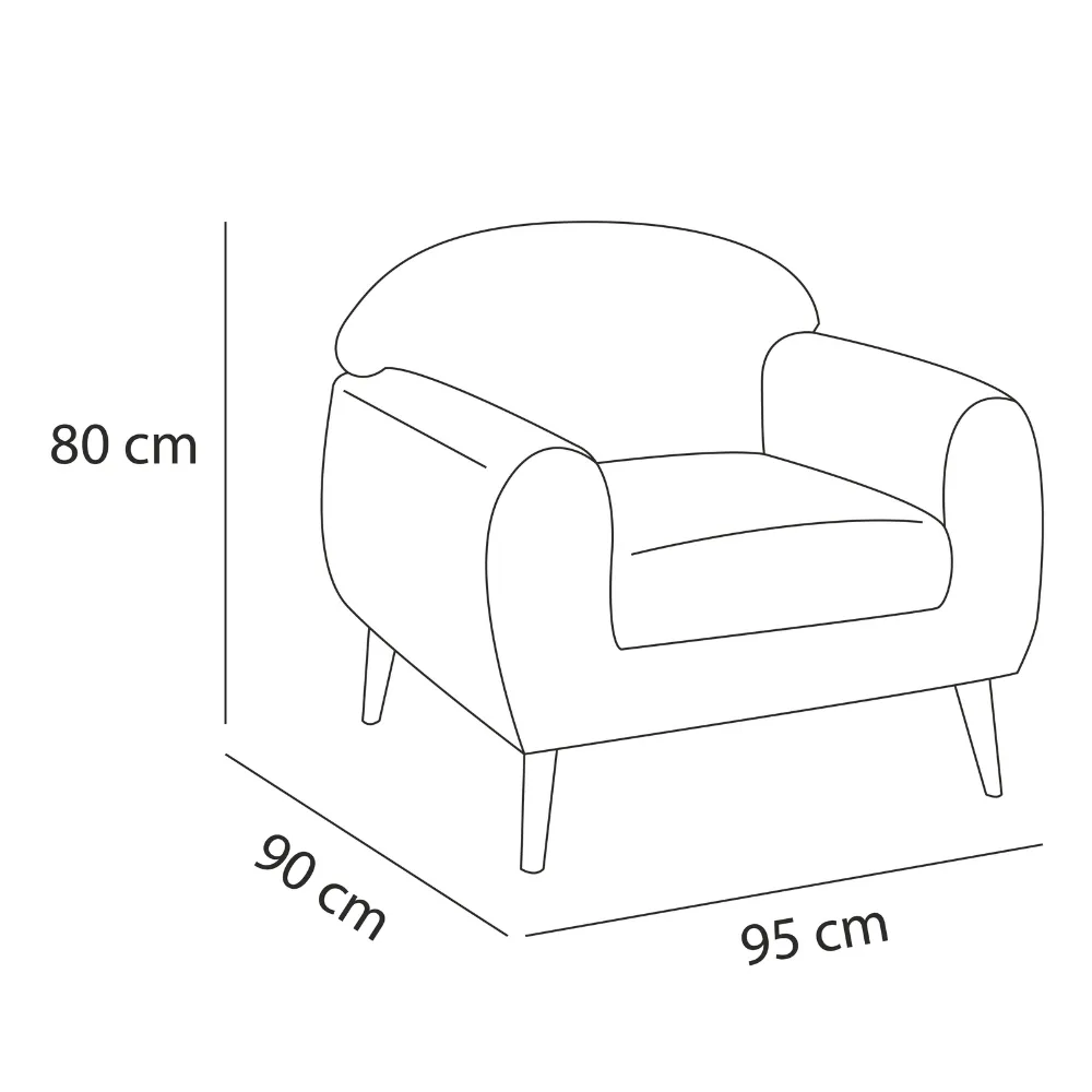 Esta butaca de estilo minimalista es ideal para espacios pequeños. Sus patas negras le dan un contraste elegante, haciéndola perfecta para interiores modernos o escandinavos.