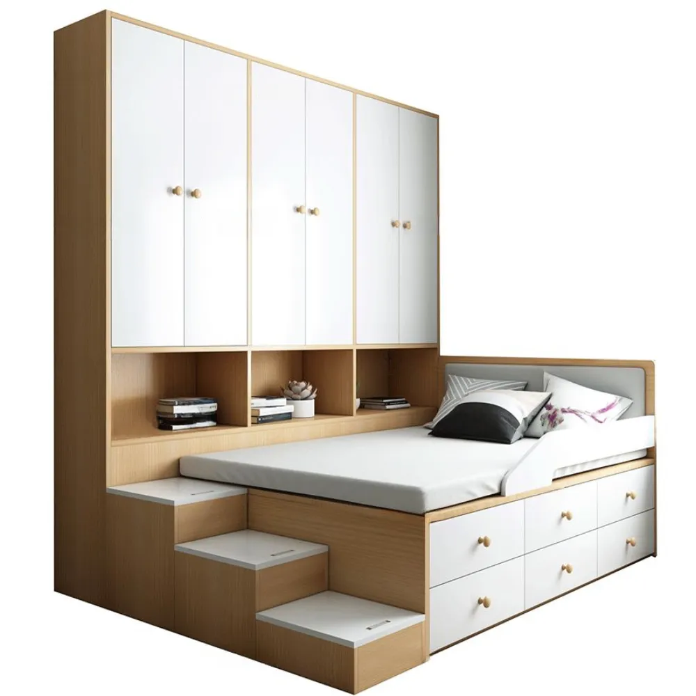 Cama Multifuncional Melamina + Ropero + Estante + Barra