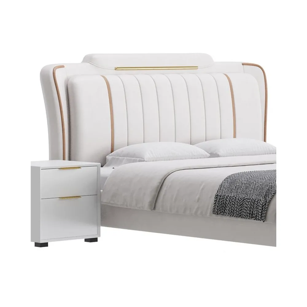 Cama Tapizada Carlotta – 2 Plz – Blanco y Dorado