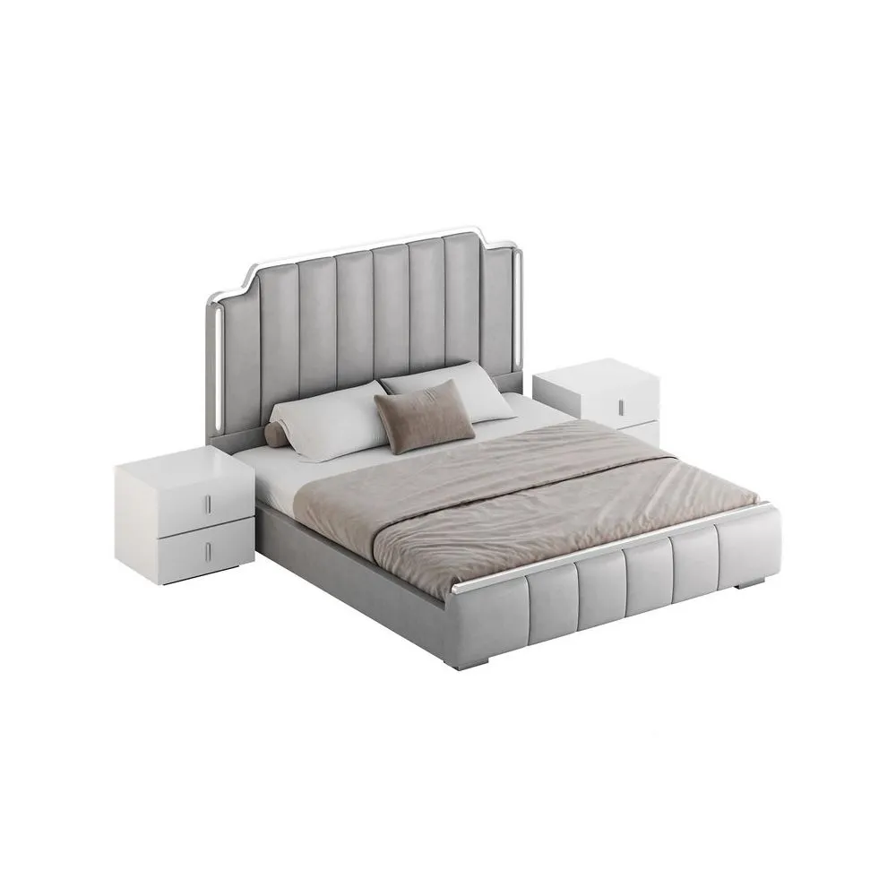 Cama tapizada Glam Beige – 2 Plz – Gris