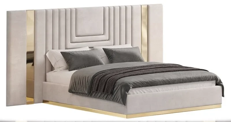 Cama Tapizada Madlen Queen - Gris y Dorado