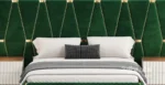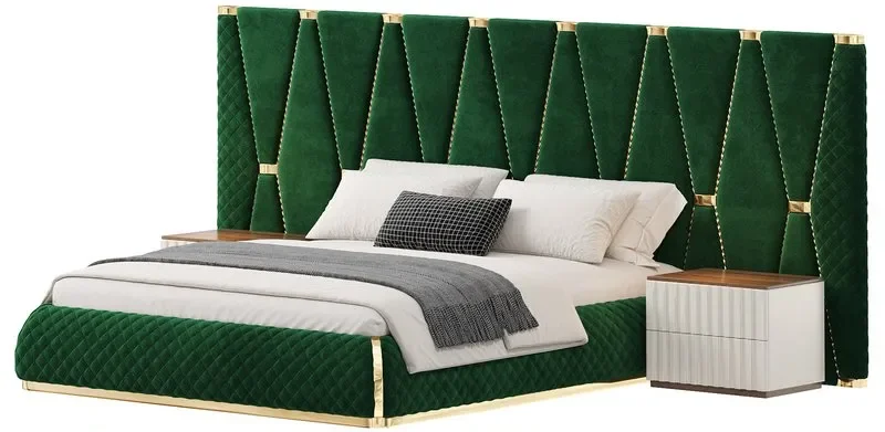 Cama Tapizada Patty + 2 Veladores Queen – Verde y Dorado