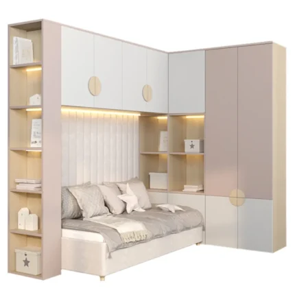 Camarote Infantil Pisa + Cabecera + Estante 1.5 plz – 2 niveles