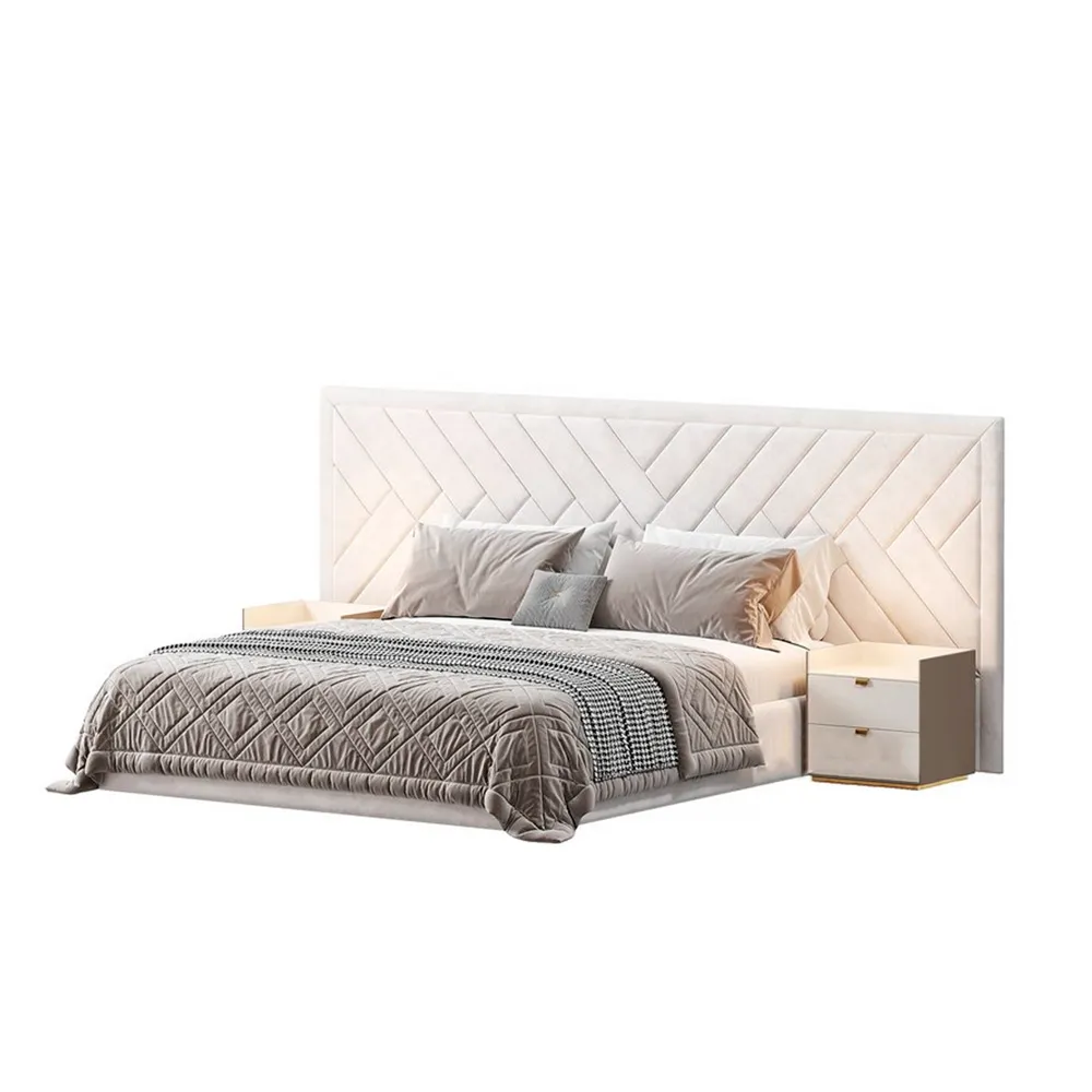 Cama Toronto + Cabecero + 2 Veladores King Plz – Blanco
