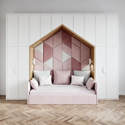 - Cabeceras acolchadas: Ambos niveles cuentan con cabeceras tapizadas en terciopelo suave con colores neutros que combinan a la perfección con cualquier decoración.