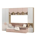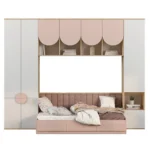 - El colchón se complementa con cojines en tonos neutros y mostaza, creando un ambiente acogedor. Perfecta para habitaciones infantiles, esta cama integra descanso, almacenamiento y diseño en una sola estructura funcional y moderna.