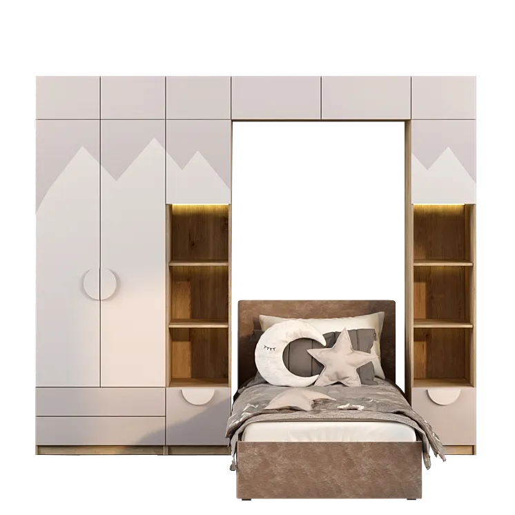 - Estantes abiertos laterales: Perfectos para libros, juguetes o elementos decorativos, con iluminación integrada que realza su estética.