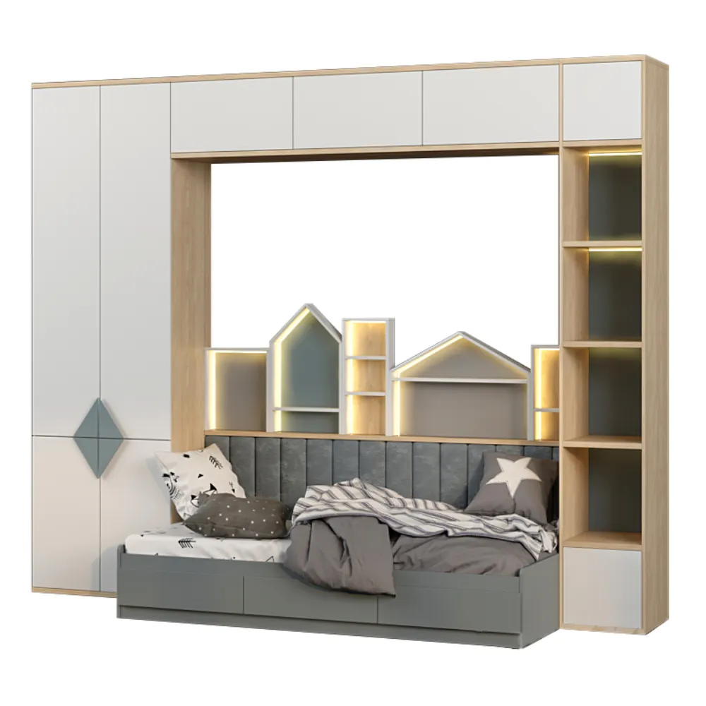Camarote Infantil Pisa + Cabecera + Estante 1.5 plz – 2 niveles