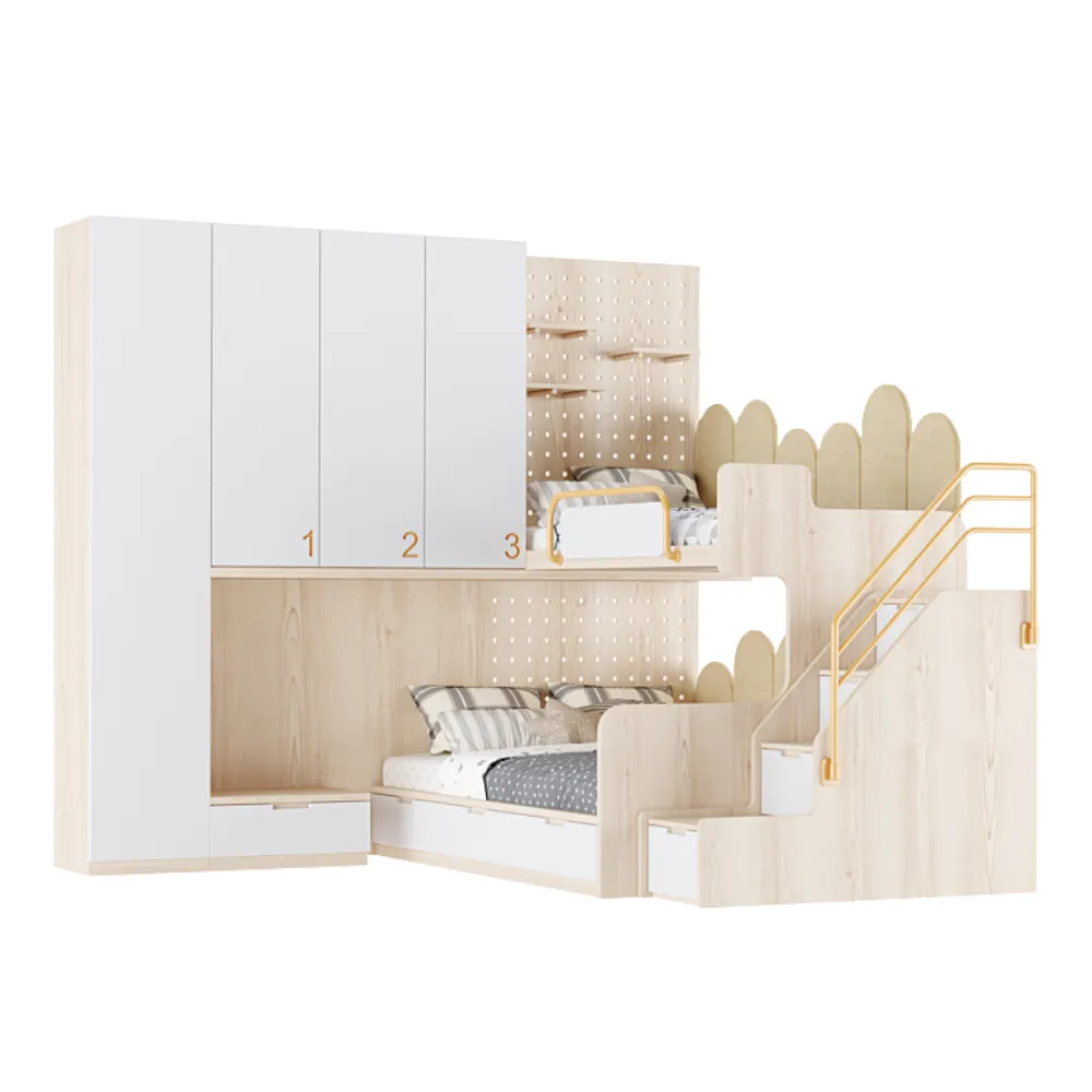 - Cajones inferiores amplios en la cama inferior para guardar ropa de cama, juguetes u otros objetos.