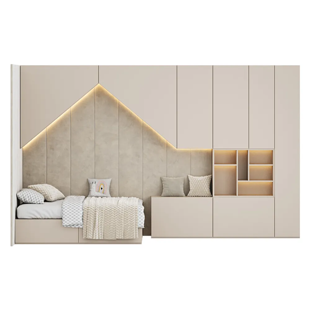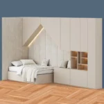 - Estantes abiertos laterales: Perfectos para libros, juguetes o elementos decorativos, con iluminación integrada que realza su estética.