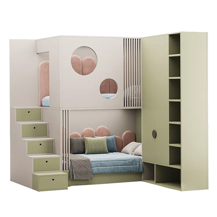 3. Cama inferior tipo sofá: La cama inferior está diseñada con un respaldo acolchado y curvas elegantes que permite descansar o dormir cómodamente.