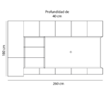 Este mueble ha sido diseñado meticulosamente para fusionar la funcionalidad con un estilo minimalista y contemporáneo, aportando un toque de sofisticación a cualquier espacio habitable. Su diseño modular combina la calidez de los acabados en madera clara con la pureza de los gabinetes blancos, creando un equilibrio visual perfecto que se adapta a diversos estilos de decoración.