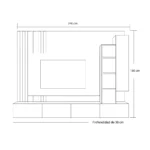 Este centro de entretenimiento presenta un diseño sofisticado y funcional, ideal para espacios contemporáneos. Su estructura integra una base con múltiples compartimentos de almacenamiento cerrados, proporcionando un aspecto ordenado y elegante. Un estante superior flotante añade una superficie adicional para la decoración o equipos electrónicos. Destaca un módulo vertical con repisas iluminadas, perfecto para exhibir objetos decorativos y libros, agregando un toque moderno y acogedor. La combinación de líneas limpias y acabados minimalistas lo convierte en una opción versátil que complementa diversos estilos de interiores.