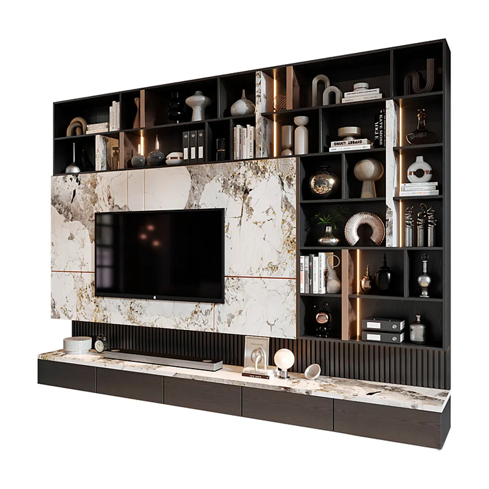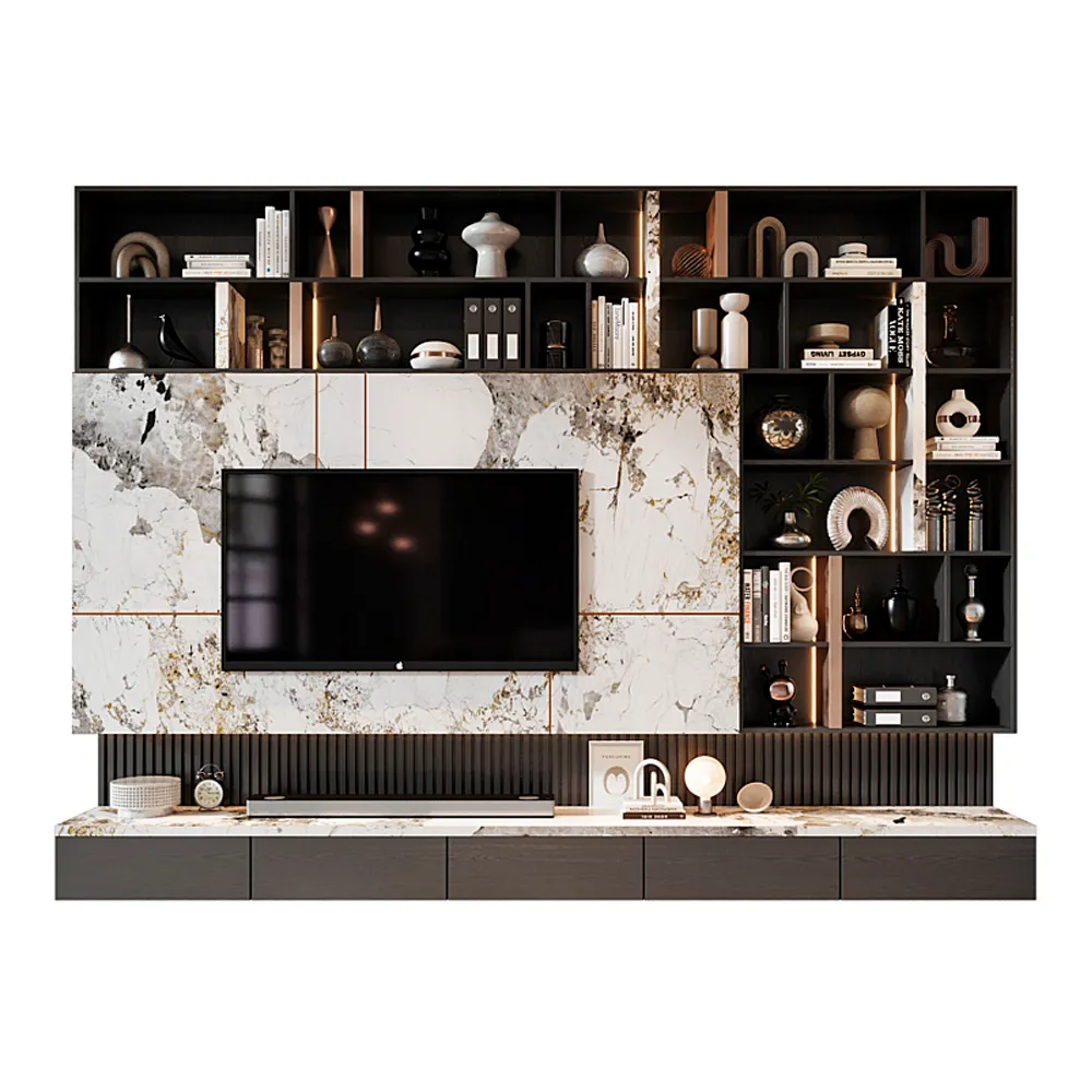 Transforme su espacio vital con la elegancia moderna y la funcionalidad de nuestra Unidad de Pared para TV de Mármol .