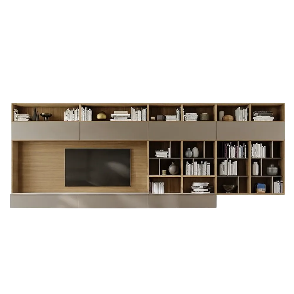 Optimice su espacio con nuestro Centro de Entretenimiento Modular, un sistema de pared fijo que combina funcionalidad superior con un diseño moderno y minimalista.