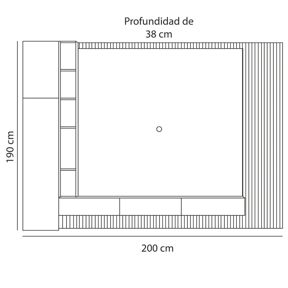 Este centro de entretenimiento presenta un diseño sofisticado y funcional, ideal para espacios contemporáneos. Su estructura integra una base con múltiples compartimentos de almacenamiento cerrados, proporcionando un aspecto ordenado y elegante. Un estante superior flotante añade una superficie adicional para la decoración o equipos electrónicos. Destaca un módulo vertical con repisas iluminadas, perfecto para exhibir objetos decorativos y libros, agregando un toque moderno y acogedor. La combinación de líneas limpias y acabados minimalistas lo convierte en una opción versátil que complementa diversos estilos de interiores.