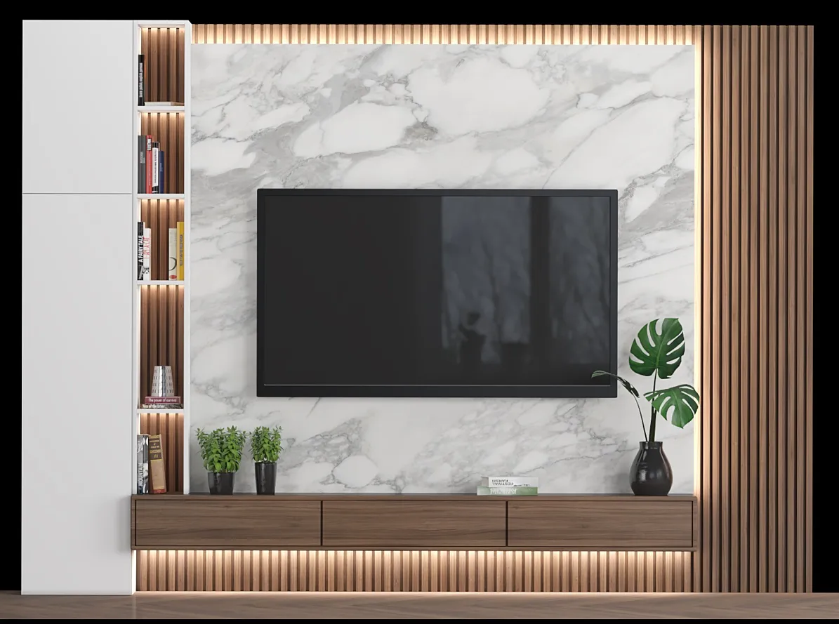 Transforme su espacio vital con la elegancia moderna y la funcionalidad de nuestra Unidad de Pared para TV de Mármol .