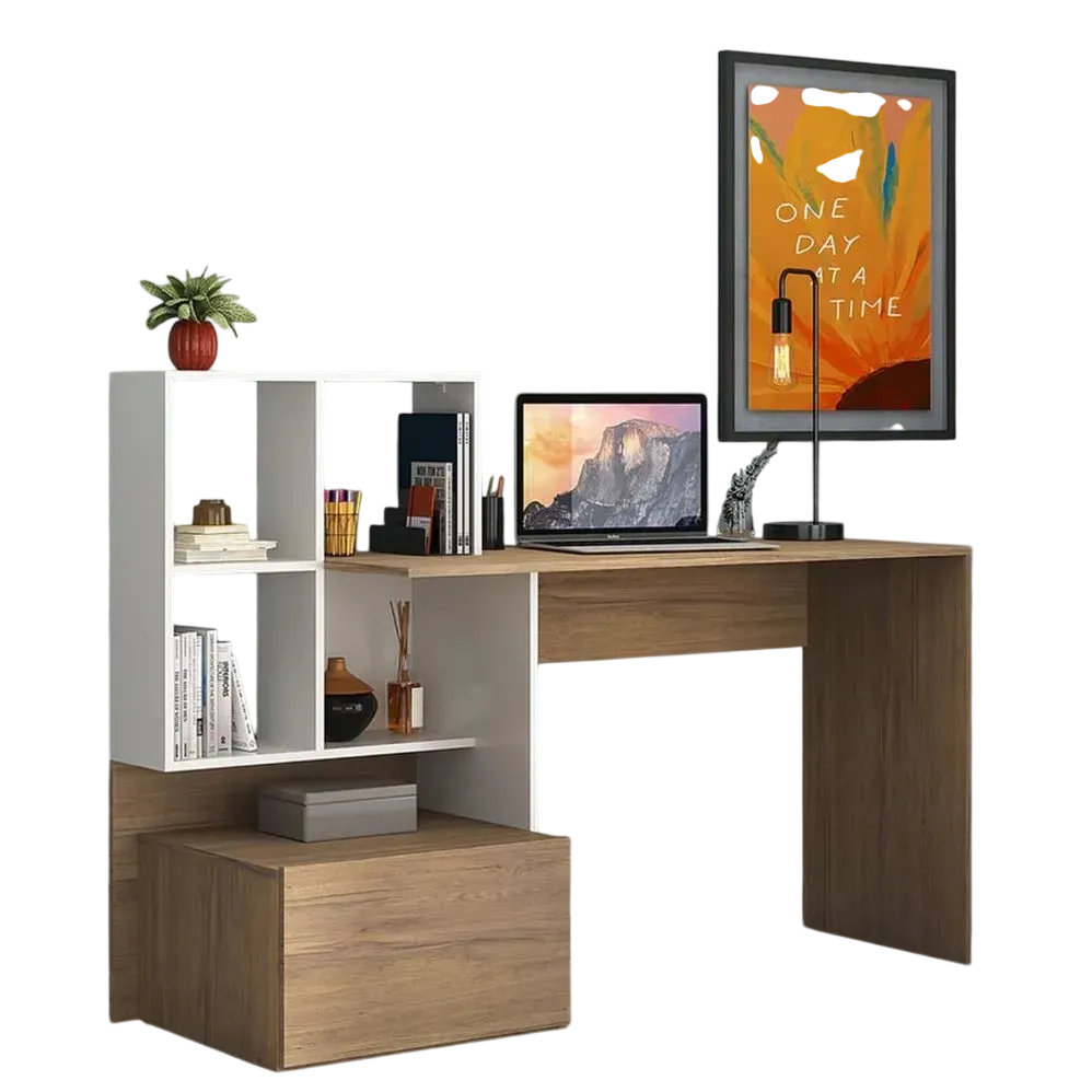 Escritorio Jujutsu Moderno - Marrón y Blanco