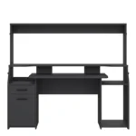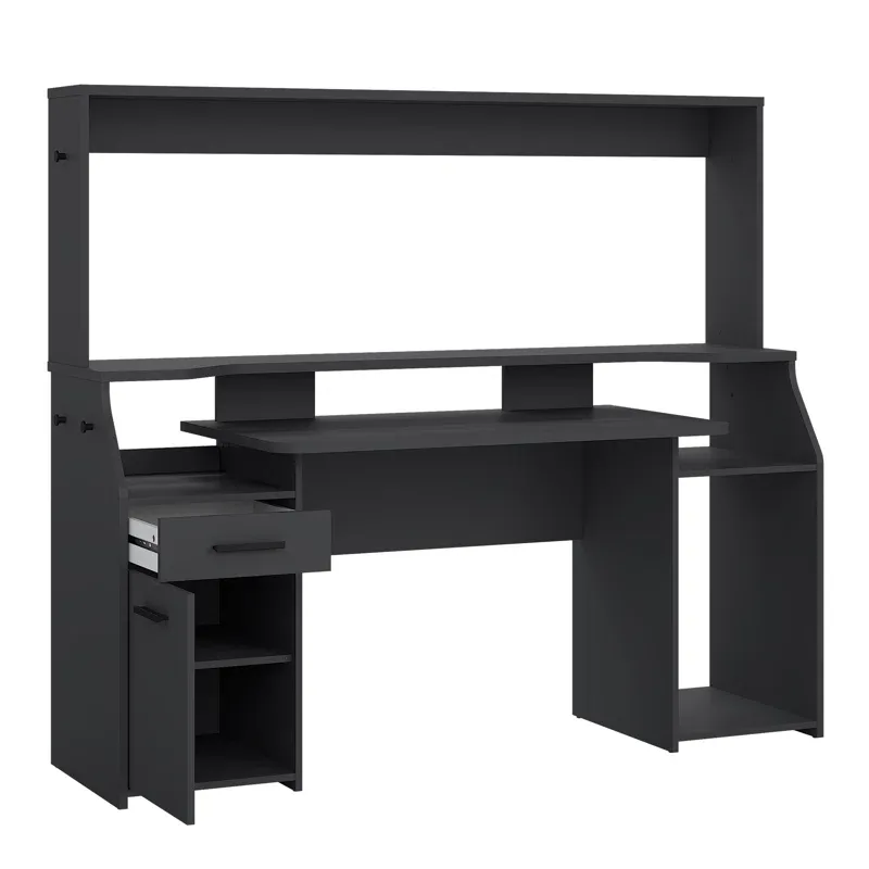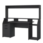 ¡El escritorio para juegos ha sido diseñado pensando en los jugadores! Tiene todo lo que un jugador activo podría necesitar. Cuenta con un estante superior grande lo suficientemente grande para dos monitores grandes y un escritorio ergonómico de tamaño generoso debajo, adecuado para el teclado, el mouse, los controladores, los juegos y más. La base del escritorio cuenta con un compartimento para computadora con un orificio de ventilación y un pequeño estante para juegos o controladores. Este escritorio para computadora para juegos de aspecto moderno tiene un acabado en Roble Negro, lo que lo convierte en una incorporación sorprendente para cualquier hogar u oficina.
