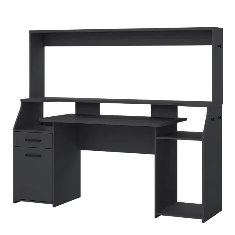 ¡El escritorio para juegos ha sido diseñado pensando en los jugadores! Tiene todo lo que un jugador activo podría necesitar. Cuenta con un estante superior grande lo suficientemente grande para dos monitores grandes y un escritorio ergonómico de tamaño generoso debajo, adecuado para el teclado, el mouse, los controladores, los juegos y más.