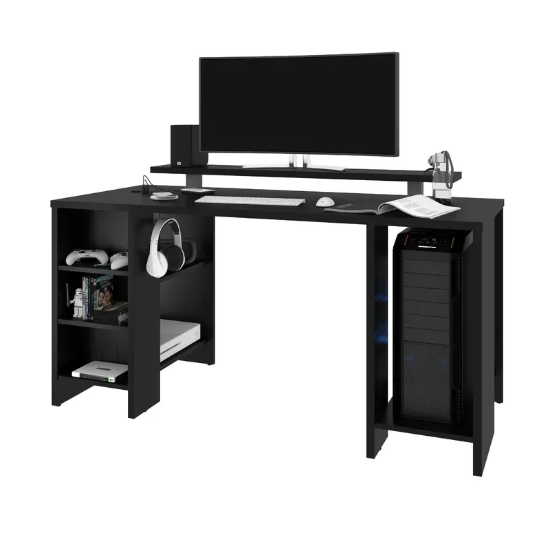 Maximice la eficiencia del espacio con un escritorio para juegos compacto que ofrece amplias opciones de almacenamiento, lo que lo hace adecuado tanto para juegos como para trabajo productivo.