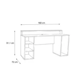 Hay una variedad de prácticas opciones de almacenamiento debajo del escritorio, que incluyen un cajón extraíble y un armario grande.