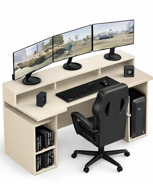 Maximice la eficiencia del espacio con un escritorio para juegos compacto que ofrece amplias opciones de almacenamiento, lo que lo hace adecuado tanto para juegos como para trabajo productivo.