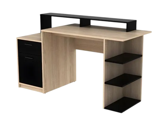 ¡El escritorio para juegos ha sido diseñado pensando en los jugadores! Tiene todo lo que un jugador activo podría necesitar. Cuenta con un estante superior grande lo suficientemente grande para dos monitores grandes y un escritorio ergonómico de tamaño generoso debajo, adecuado para el teclado, el mouse, los controladores, los juegos y más. La base del escritorio cuenta con un compartimento para computadora con un orificio de ventilación y un pequeño estante para juegos o controladores. Este escritorio para computadora para juegos de aspecto moderno tiene un acabado en Roble Negro, lo que lo convierte en una incorporación sorprendente para cualquier hogar u oficina.