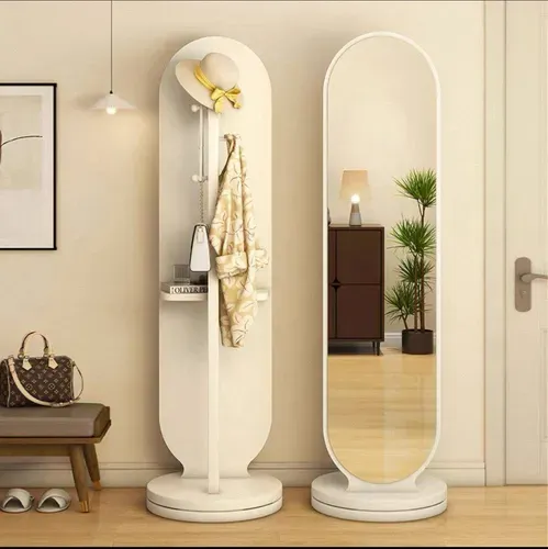 Espejo de Pie Giratorio 360° con Perchero y Estante Aura – Blanco