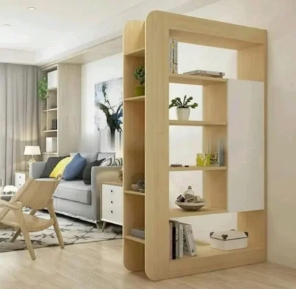 Estante Separador Lateral Kraft – Madera Clara y Blanco