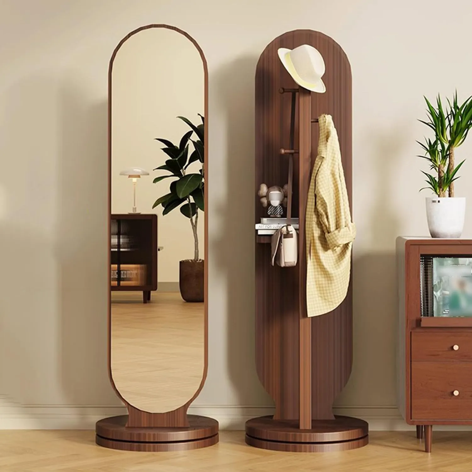 Espejo de Pie Giratorio 360° con Perchero y Estante Urban – Marrón