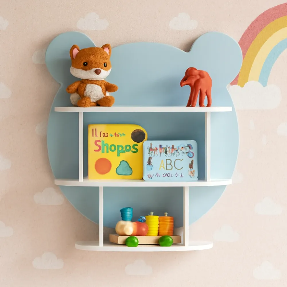 Este estante infantil combina funcionalidad y diseño encantador para complementar cualquier habitación infantil. Su estructura en forma de animal le da un toque lúdico y decorativo, ideal para estimular la creatividad de los más pequeños. Cuenta con tres niveles de almacenamiento que permiten organizar libros, juguetes y objetos decorativos de manera accesible y ordenada. Su diseño de montaje en pared optimiza el espacio y brinda una solución práctica para mantener el área despejada. Fabricado con materiales resistentes y de alta calidad, ofrece estabilidad y seguridad. Es una excelente opción para fomentar el hábito del orden y darle un toque acogedor y divertido al ambiente infantil.