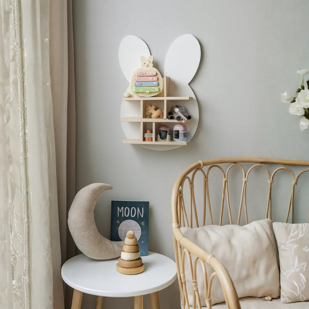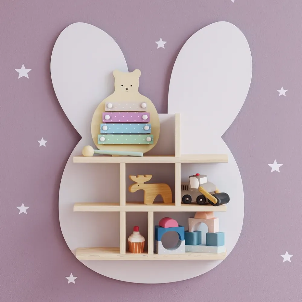 Este estante infantil combina funcionalidad y diseño encantador para complementar cualquier habitación infantil. Su estructura en forma de animal le da un toque lúdico y decorativo, ideal para estimular la creatividad de los más pequeños. Cuenta con tres niveles de almacenamiento que permiten organizar libros, juguetes y objetos decorativos de manera accesible y ordenada. Su diseño de montaje en pared optimiza el espacio y brinda una solución práctica para mantener el área despejada. Fabricado con materiales resistentes y de alta calidad, ofrece estabilidad y seguridad. Es una excelente opción para fomentar el hábito del orden y darle un toque acogedor y divertido al ambiente infantil.