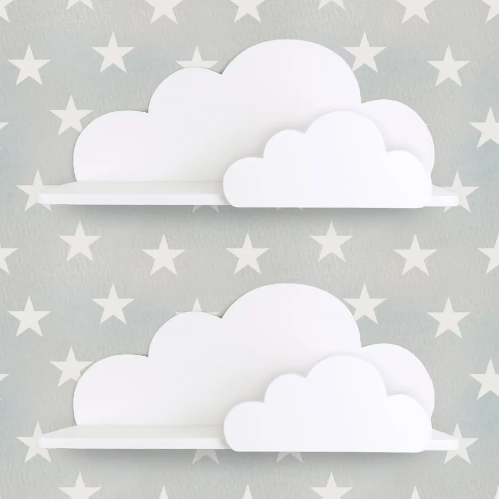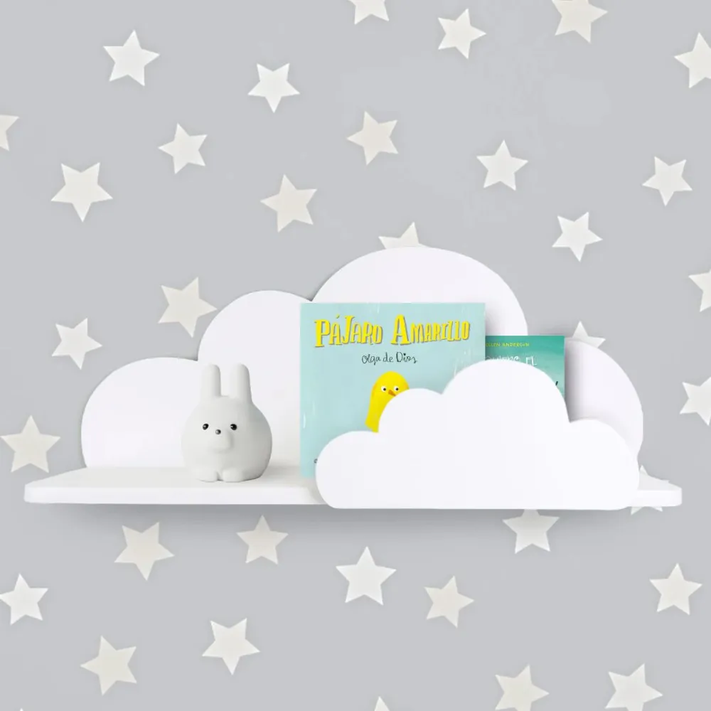 Las repisas ofrecen espacio para almacenar libros, juguetes y otros objetos decorativos, fomentando la organización y la creatividad en los niños. Su diseño flotante y sus formas suaves añaden un toque mágico y onírico a la habitación infantil.