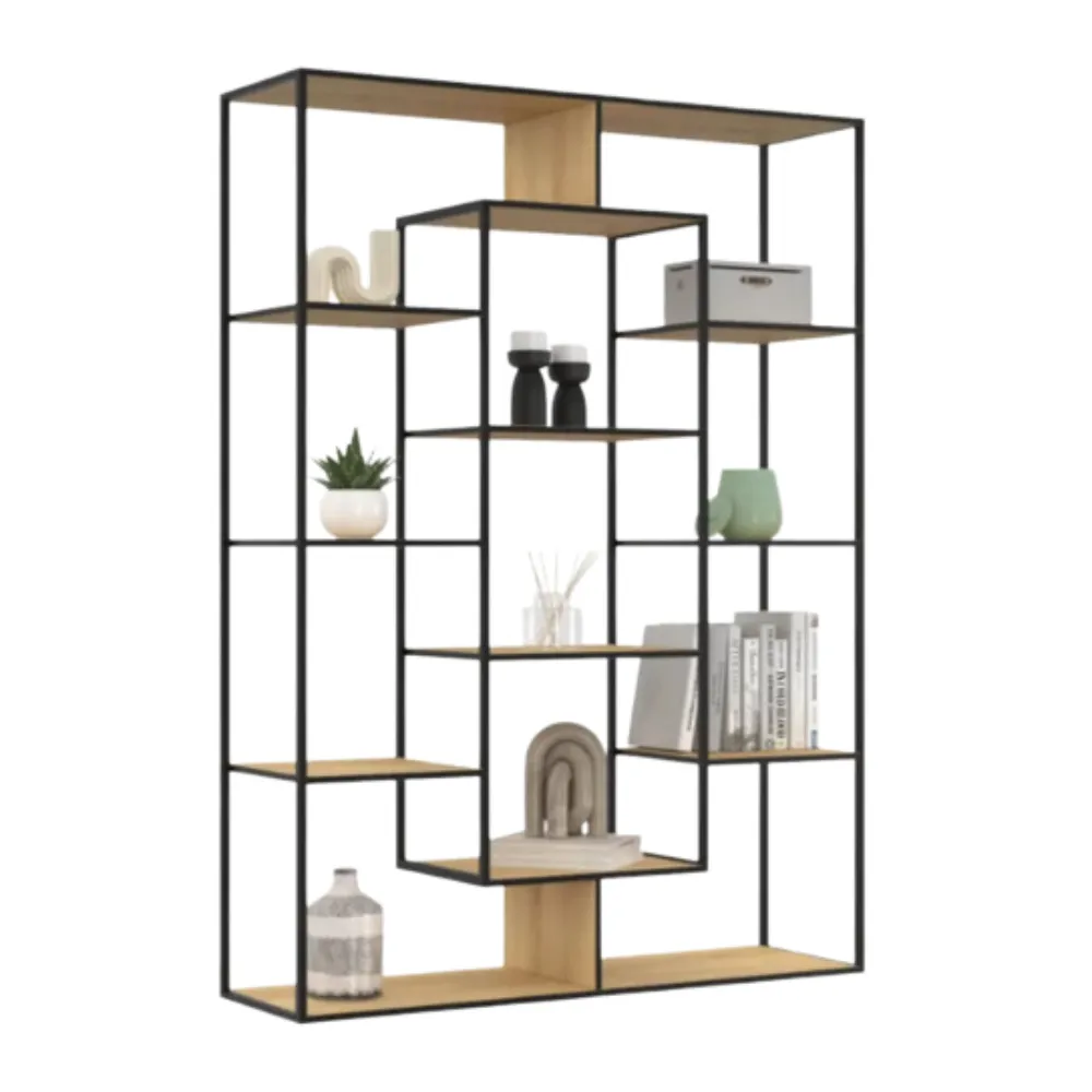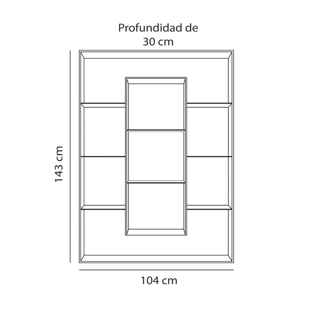 Estante decorativo a base de melamina de 18 mm de espesor con canto delgado en la estructura y canto grueso de 3 mm. Estante de líneas geométricas modernas, perfecto para exhibir libros y decoración en un ambiente minimalista.
