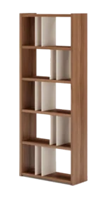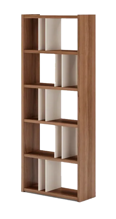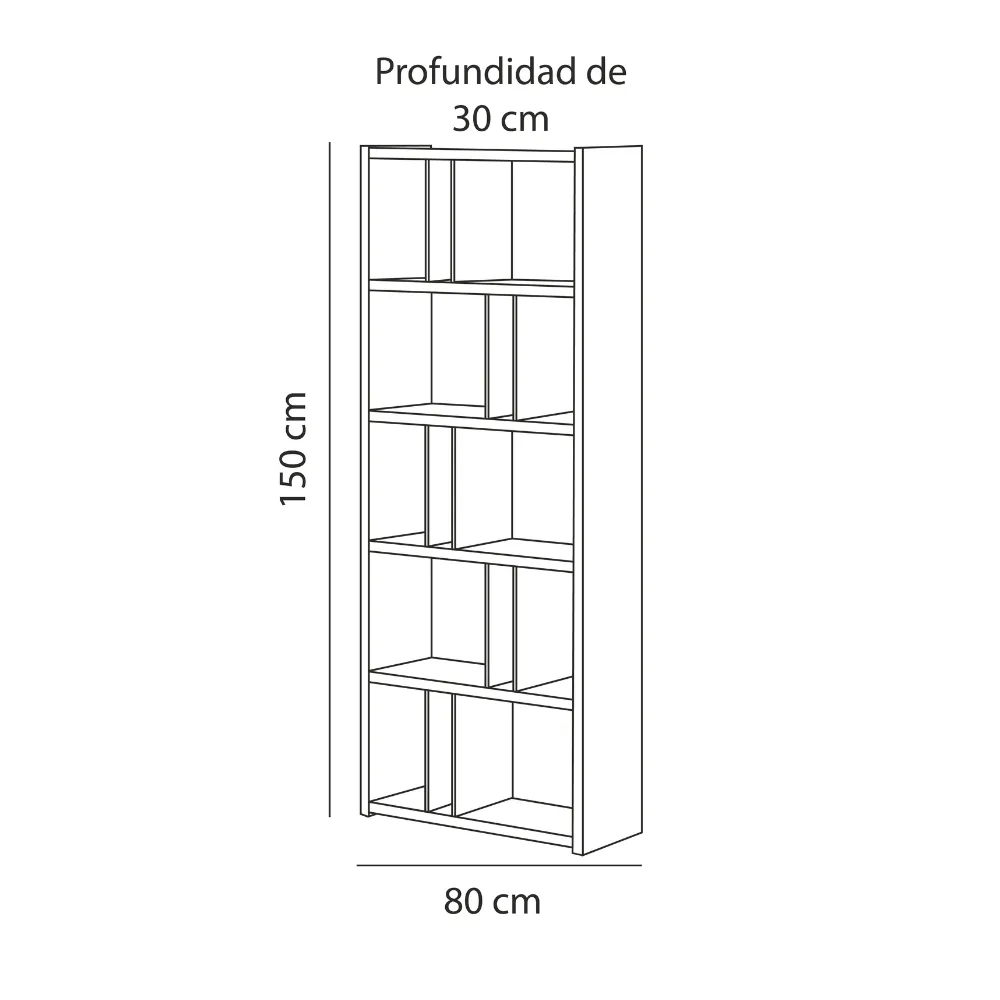 Estante decorativo a base de melamina de 18 mm de espesor con canto delgado en la estructura y canto grueso de 3 mm. Ideal para salas, oficinas o estudios que necesiten un toque contemporáneo y funcional.