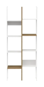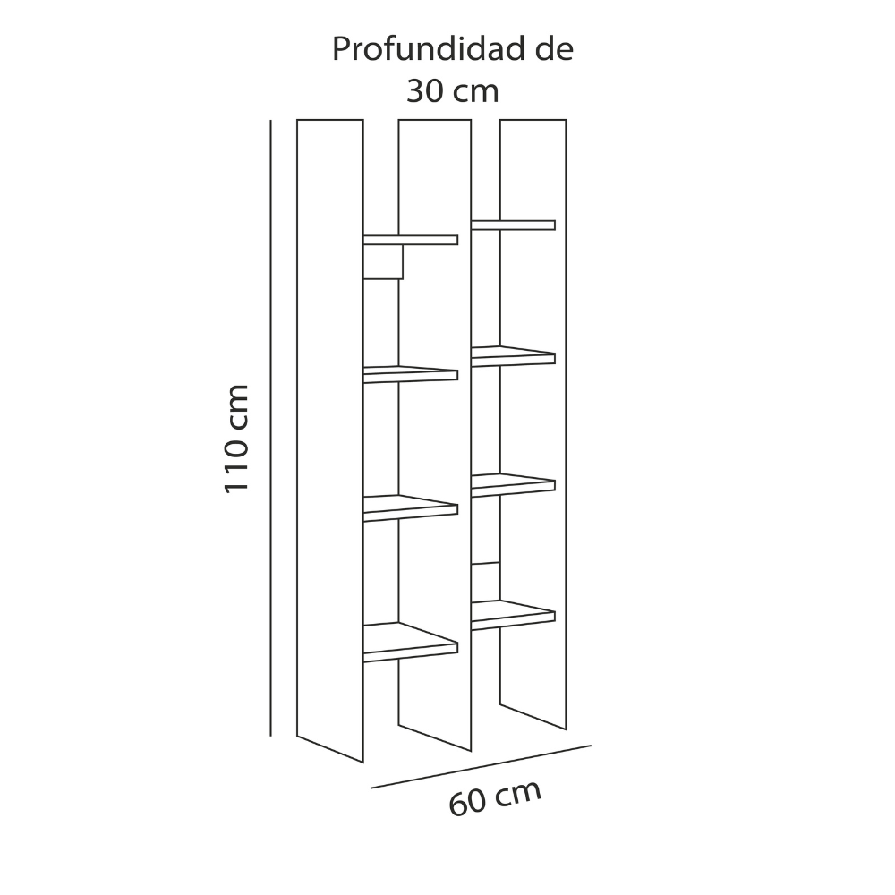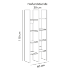 Estante decorativo a base de melamina de 18 mm de espesor con canto delgado en la estructura y canto grueso de 3 mm.
