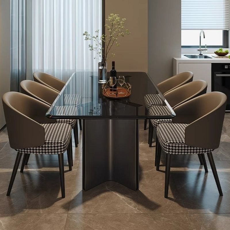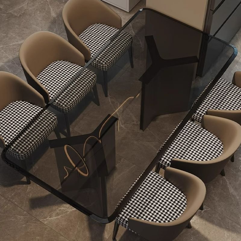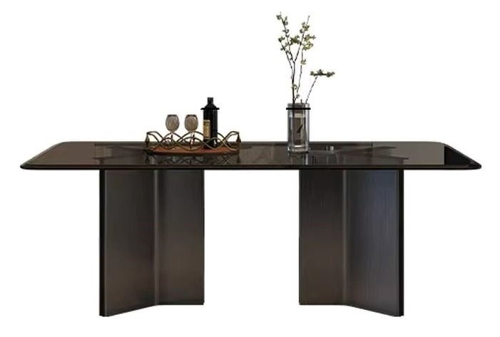 Esta mesa de diseño moderno y sofisticado combina materiales elegantes y formas geométricas para un estilo vanguardista. Su tablero rectangular de vidrio oscuro le otorga un acabado brillante y refinado, reflejando la luz y realzando su presencia en cualquier espacio. La base está compuesta por dos soportes anchos y sólidos, con un diseño simétrico que aporta estabilidad y equilibrio visual. Su estructura en tonos oscuros la hace ideal para comedores, salas de reuniones o espacios contemporáneos, combinando funcionalidad y estética. Su diseño versátil permite integrarla fácilmente en diferentes estilos de decoración, desde minimalista hasta lujoso, siendo un punto focal en cualquier ambiente.